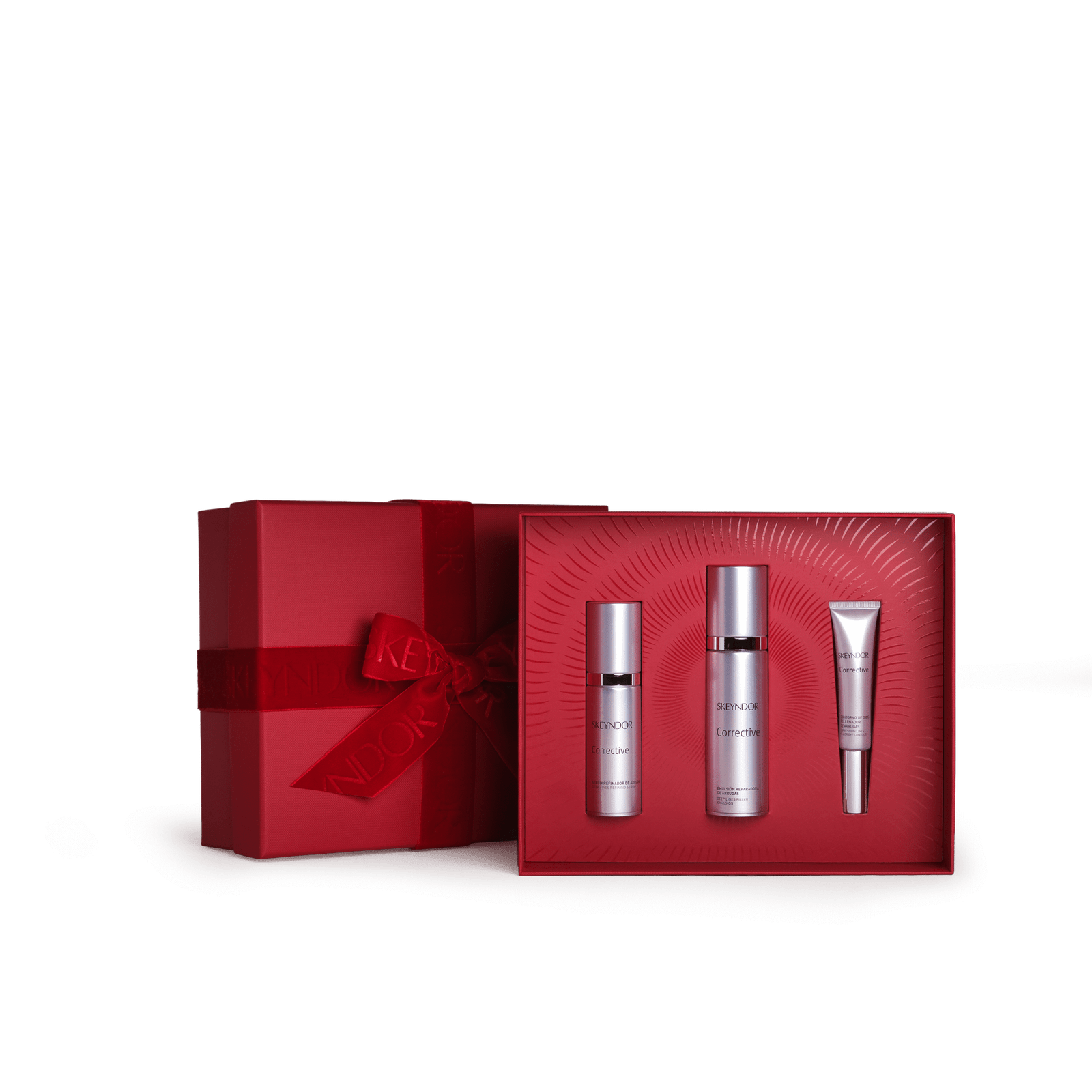 The Corrective Kit is the ideal gift. It includes the Deep Wrinkle and Expression Line Correcting Cream, which fills and relaxes wrinkles, or the Correcting Emulsion, specially formulated to smooth facial expression lines. The kit also contains the Wrinkle Refining Serum, which combines a peeling technique with a powerful decontracting action. This advanced formula blends peptides and active ingredients that relax the overall appearance of wrinkles, together with a biological exfoliant that promotes a renewed and smoother skin texture.